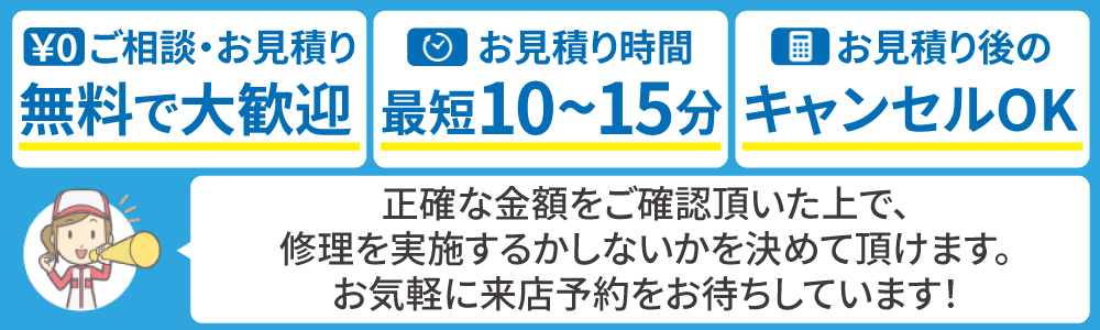 ※作業内容によっては修理完了まで1日を超える場合がございます。
