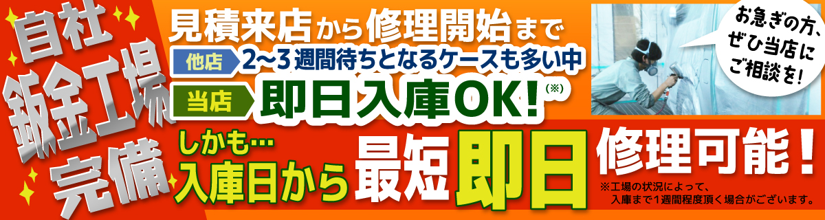 バンパー補修以外でも、通常翌日にお引き渡しが可能です。