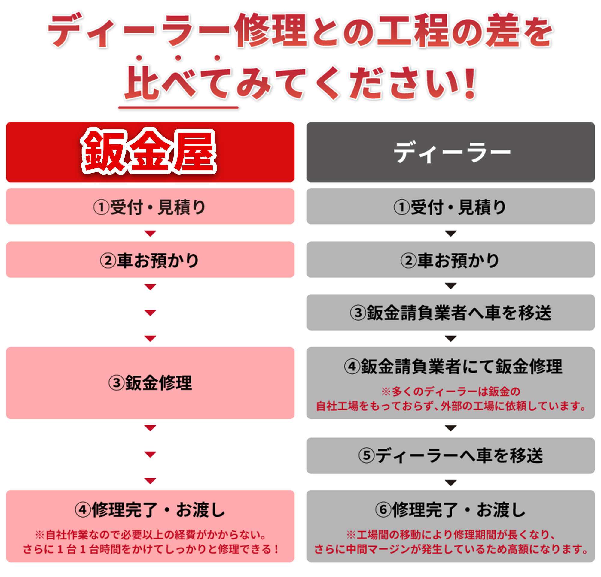 ④最新設備が整った板金・修理専門店だからこそできる作業工程!無駄な工程が無い分コストを圧縮!