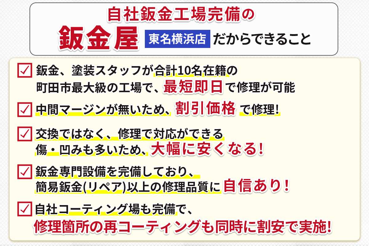 町田市・横浜市旭区・緑区・瀬谷区・相模原市エリアの皆様にご利用頂き、板金年間1,000台!